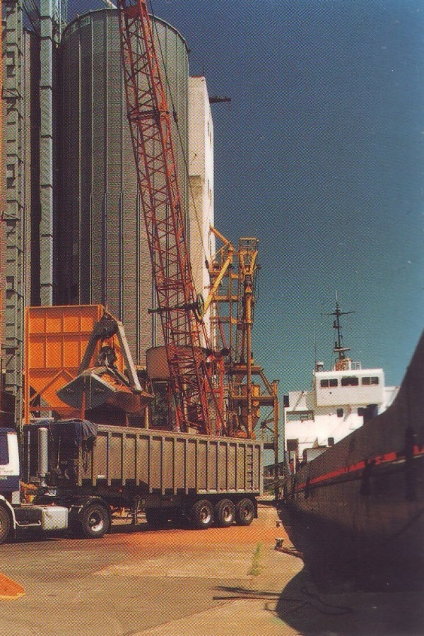 Grain cargoes at Goole are handled by Timmgrain Ltd, a company which operates a twin-berth terminal at South Dock. Timmgrain handles maize, milling wheats and specialised grain products. The total capacity of the company's silos is currently 14,000 tonnes. High-grade added-value products are discharged by grab onto a belt conveyor/elevator and gravity-fed into bins. This technique is designed to keep movement to a minimum and limit breakages of brittle commodities.