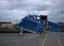 The South Dock bridge was recently replaced with a newer model. The new bridge was built by the side of the existing one and slid across with a huge floating crane over the space of a weekend. It allows two lanes of traffic to cross at once and was part of a more general modernising of all the bridge mechanisms. Instead of a man and a bike, the bridges are now controlled from one place and monitored with CCTV.