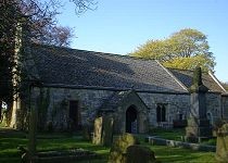 It is an old church restored last century, with black and white roofs looking down on cream walls and arches. The arcades are medieval, and the narrow 13th Century doorway to the vestry has an old studded door and hinges. There are two old carved chairs. The glass showing four choristers is in memory of two of them. A window in a corner of the chancel has a scene which may be unique in a church - Queen Victoria near the close of her long life, visiting the wounded of the South African War. She sits in her wheel chair, giving to one of the soldiers a bunch of the daffodils which one of her ladies (wearing a lovely mantle with a fur collar) holds in her arm. Conducting the royal party is an officer in the brilliant blue uniform of the Guards. It is like a vivid page from a picture book.